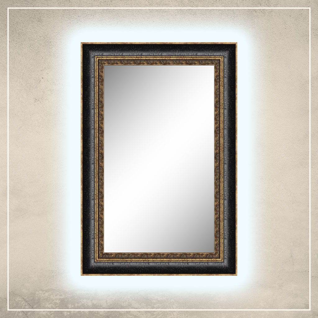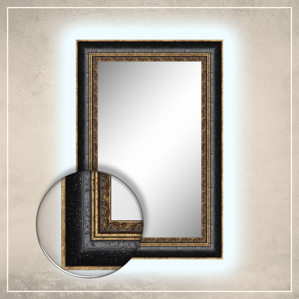 • peegliraam on viimistletud kuldse ja musta värviga