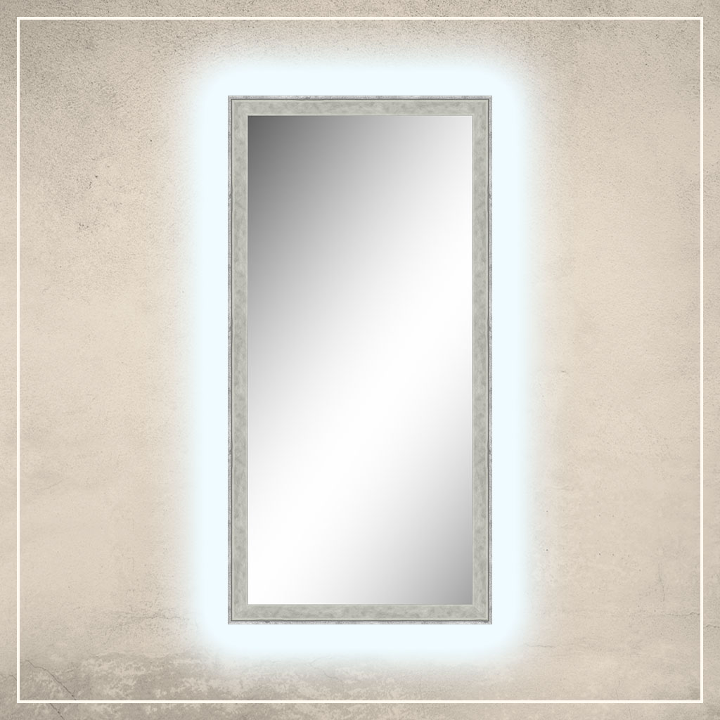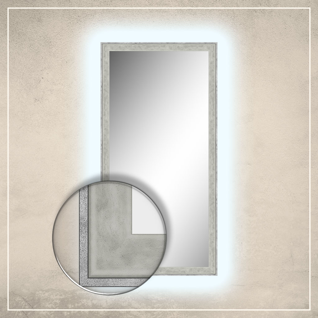 • peegliraam on viimistletud valge/halli ja hõbedase värviga