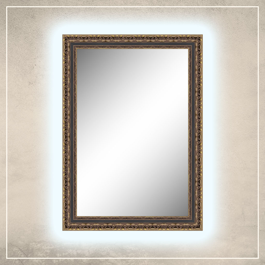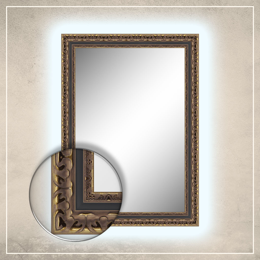 • peegliraam on viimistletud kuldse ja musta värviga