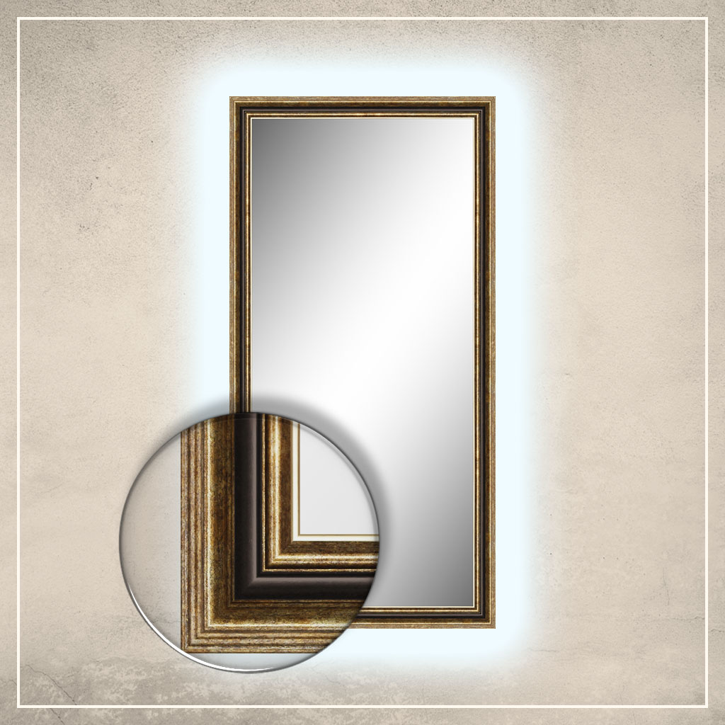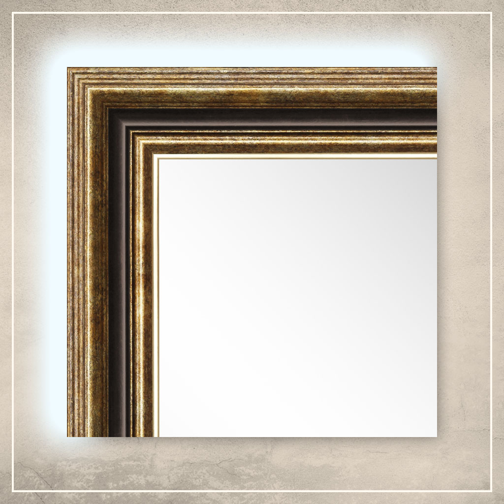 • peegliraam on viimistletud kuldse ja pruuni värviga